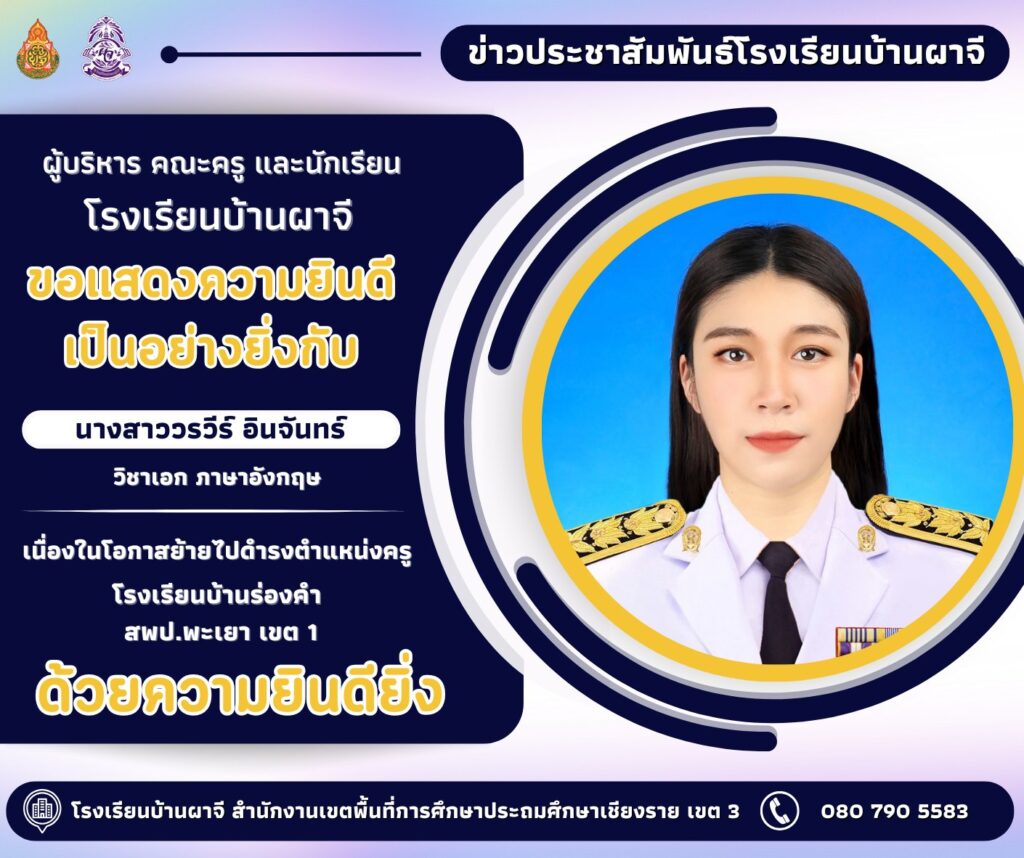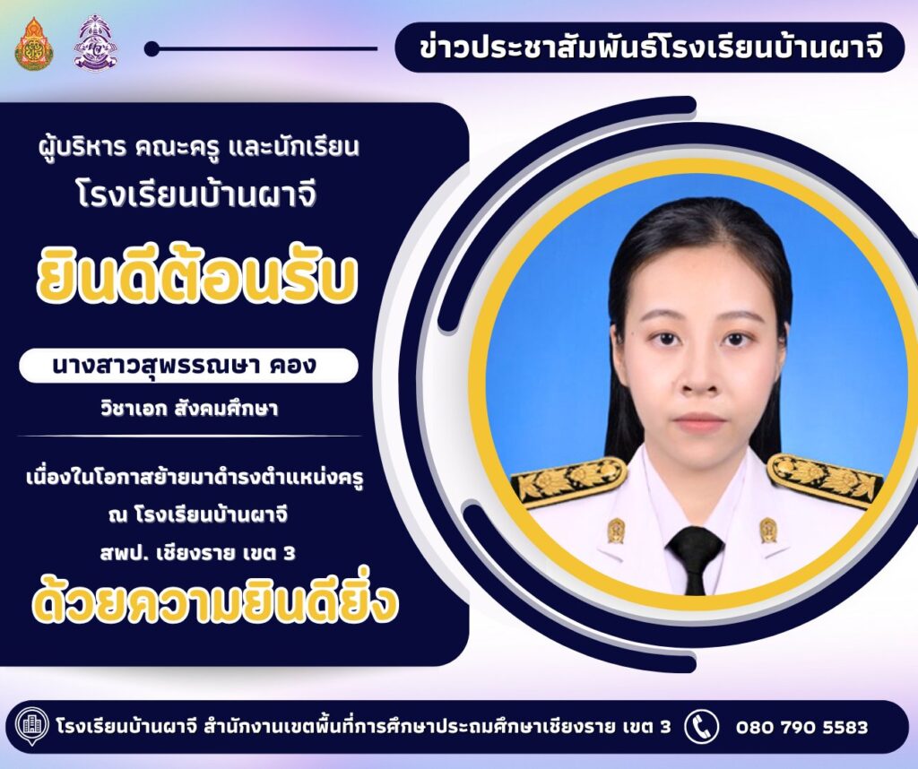 พฤศจิกายน 10, 2568โรงเรียนบ้านผาจี ขอแสดงความยินดีและยินดีต้อนรับคุณครูสุพรรณษา คอง