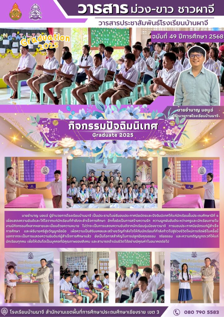 กุมภาพันธ์ 20, 2569โรงเรียนบ้านผาจีได้จัดการเลือกตั้งประธานนักเรียนประจำปีการศึกษา 2569